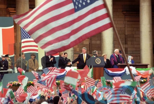 The Clintons visited Northern Ireland in 1995 before travelling to Dublin.