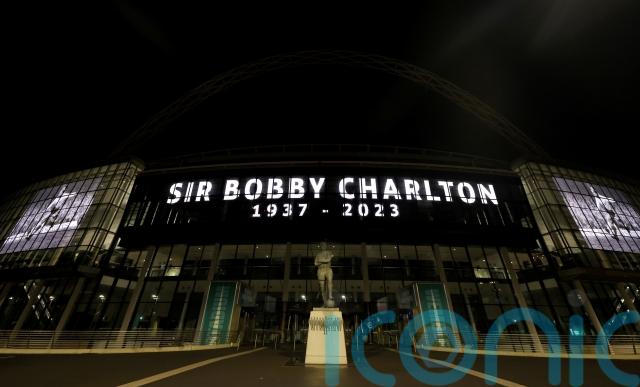 A tribute to Charlton was shown on giant screens outside Wembley on Saturday night.
