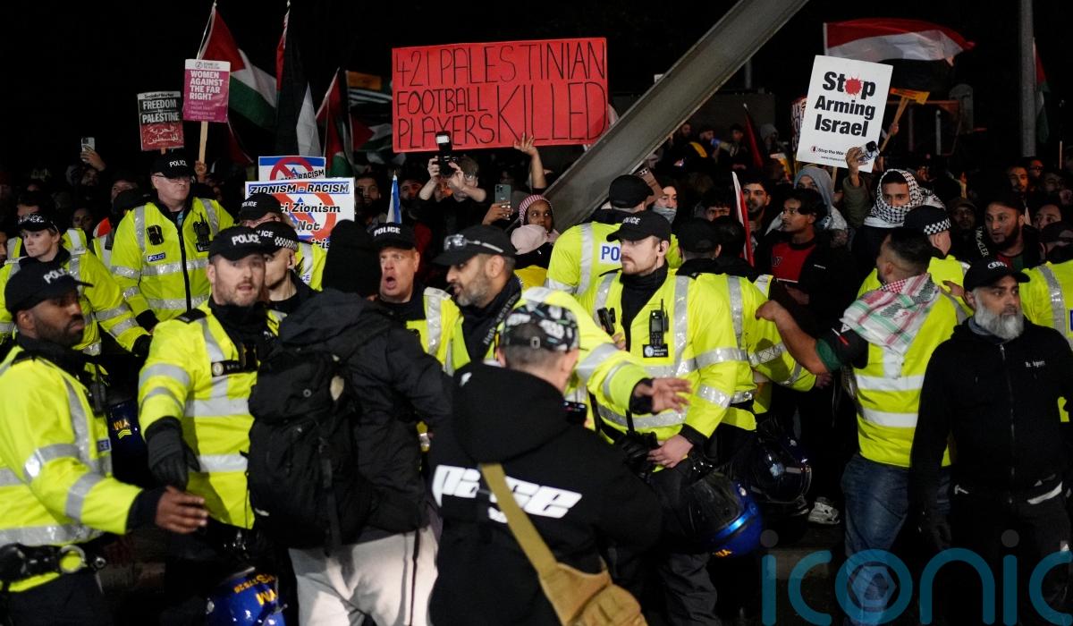 A pro-Palestine protest was held outside the Villa’s stadium before kick-off, where hundreds turned up with Palestinian flags and anti-Israeli banners.