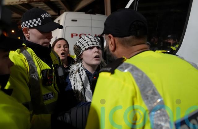 There was a flashpoint as a woman holding an Israeli flag walked past but she was quickly escorted away by police before it escalated.