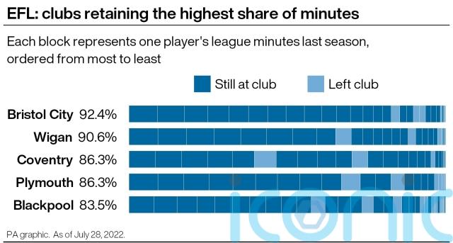 Bristol City are the only non-Premier League club to have retained their 11 most-used players ahead of the new season in England, PA analysis reveals.